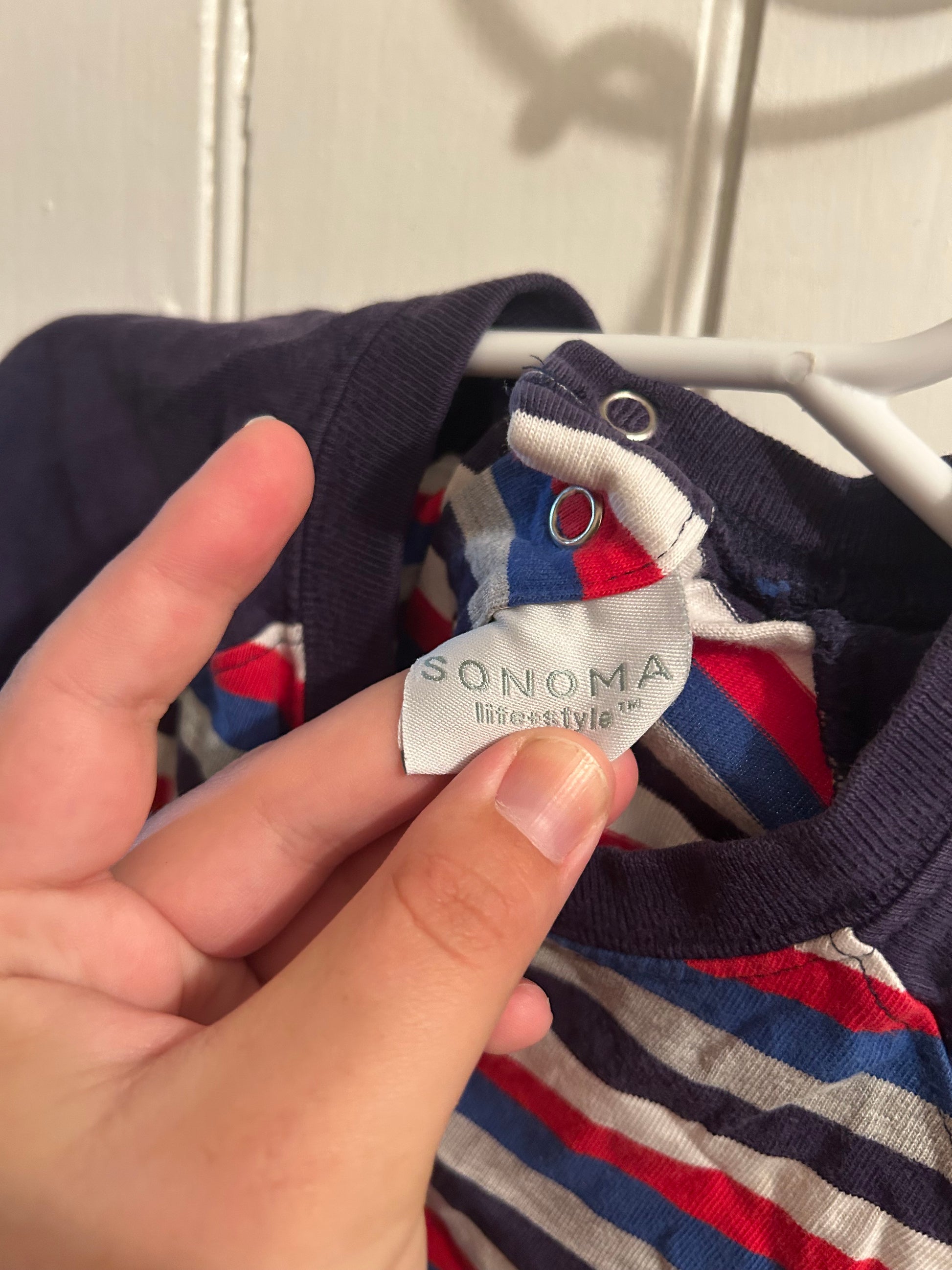 Sonoma brand. Short sleeve shirt. Blue, red & white striped. Size 24m. Brand new condition