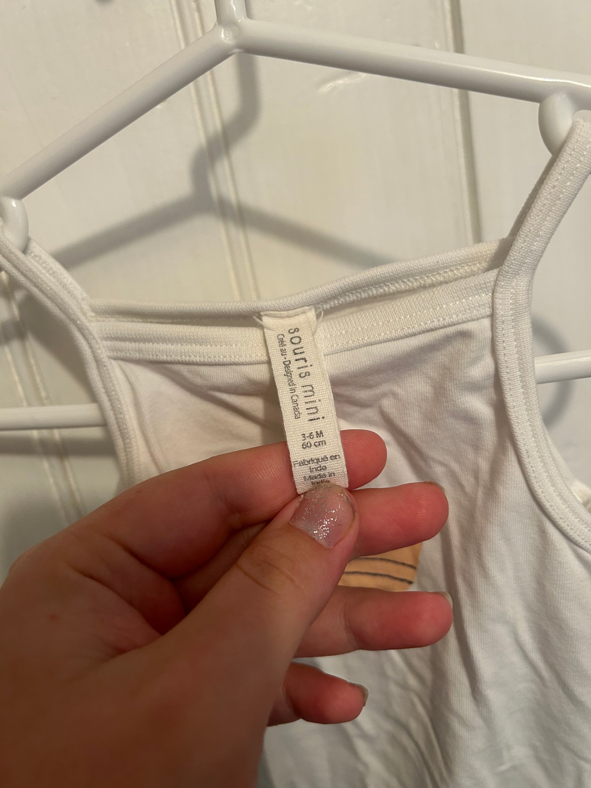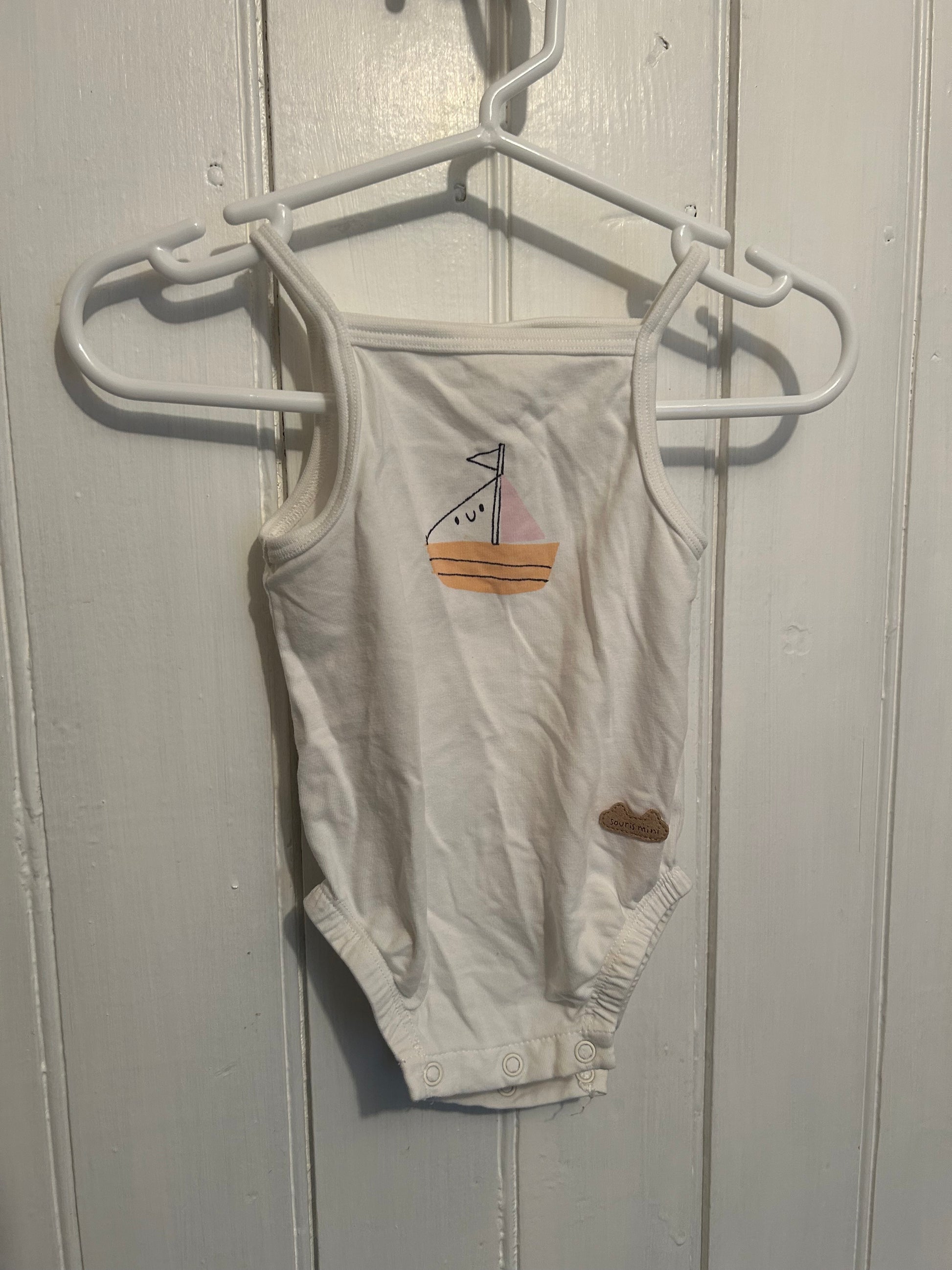 Souris mini brand. Tank top onesie. White with sail boat graphic. Size 3/6m. Brand new condition