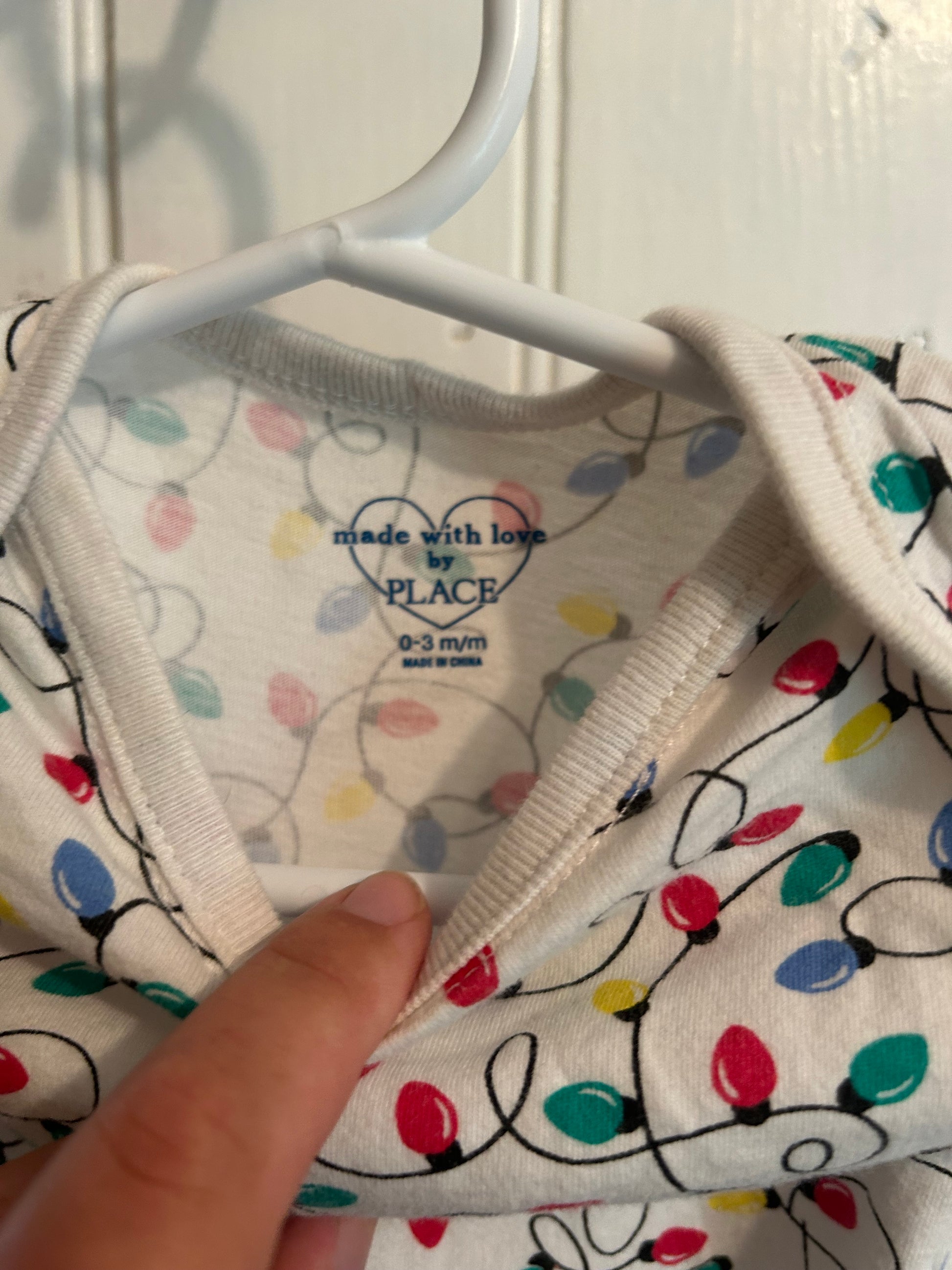 The children’s place brand. Long sleeve onesie. Multicoloured Christmas lights print. Size 0/3m. Brand new condition