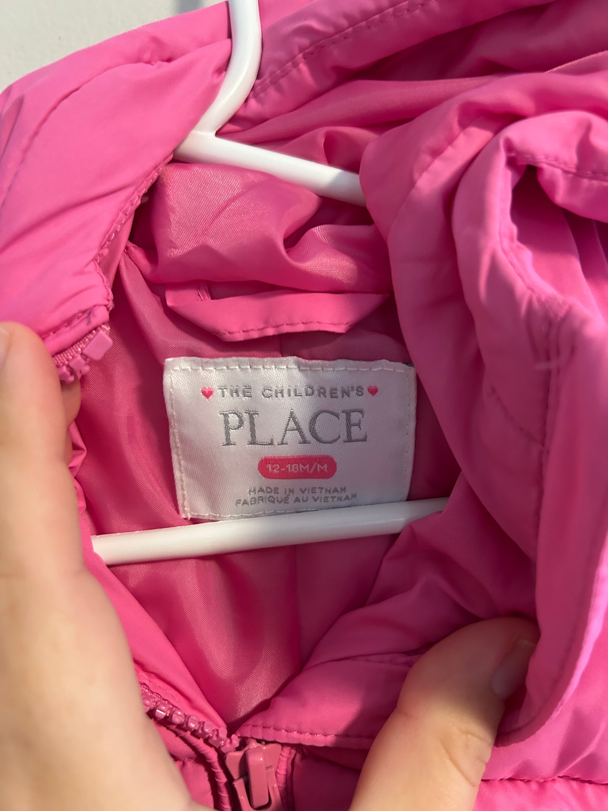 The children’s place brand. Zip up hooded winter puffer jacket. Pink in colour. Size 12/18m. Brand new condition