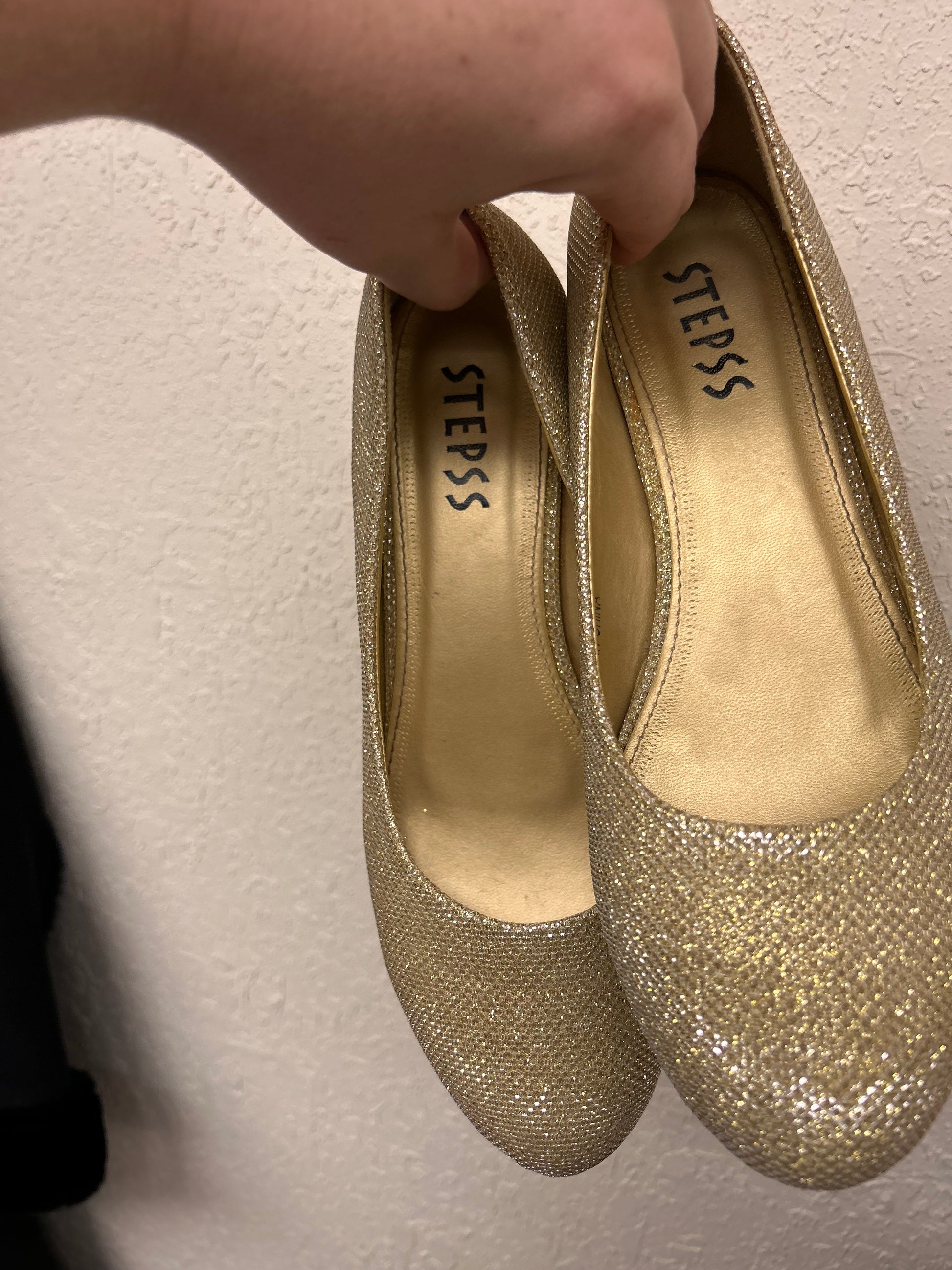 Steps brand. Wedge heels. Gold glitter. Size women’s 6. Brand new condition