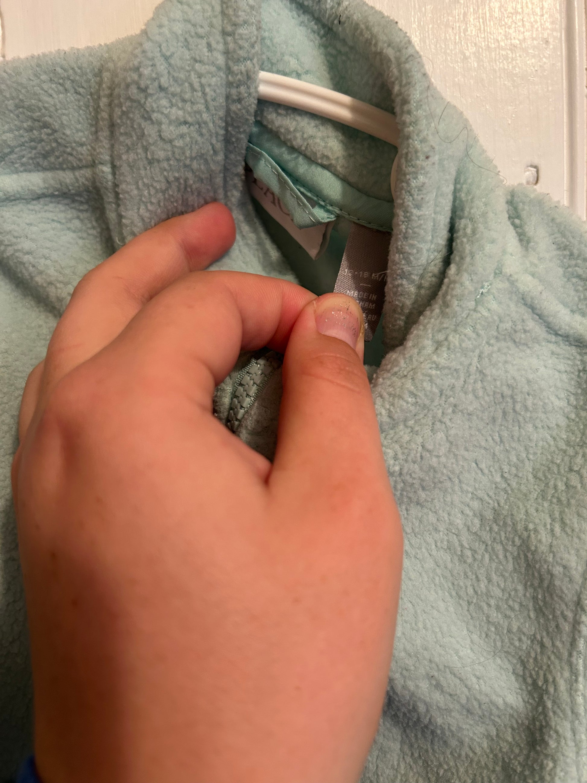 The children’s place brand. Zip up fleece sweater. Teal in colour. Size 12/18m. Like new condition, light wash wear