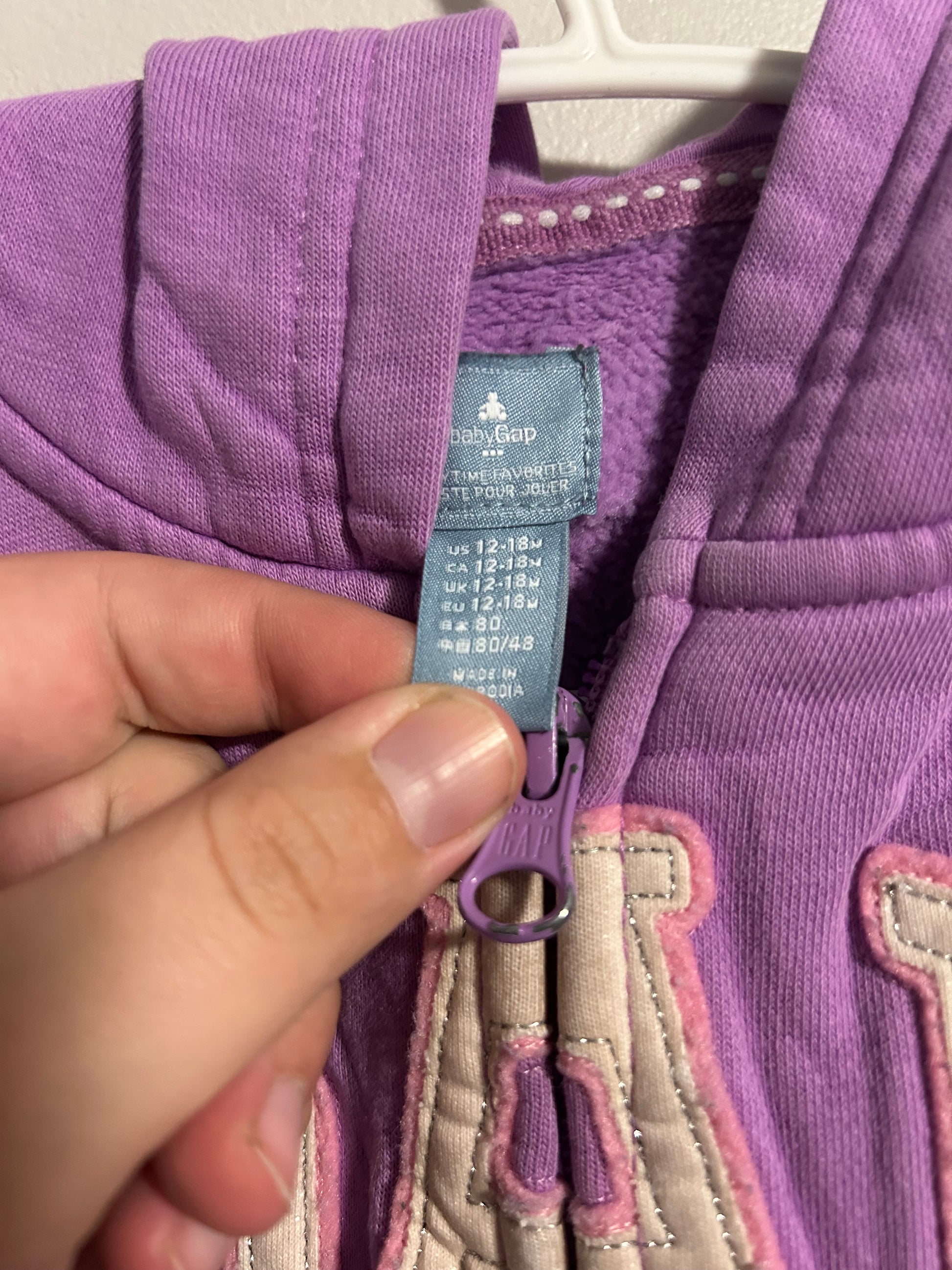 Gap brand. Zip up hoodie. Purple in colour. Size 12/18m. Brand new condition