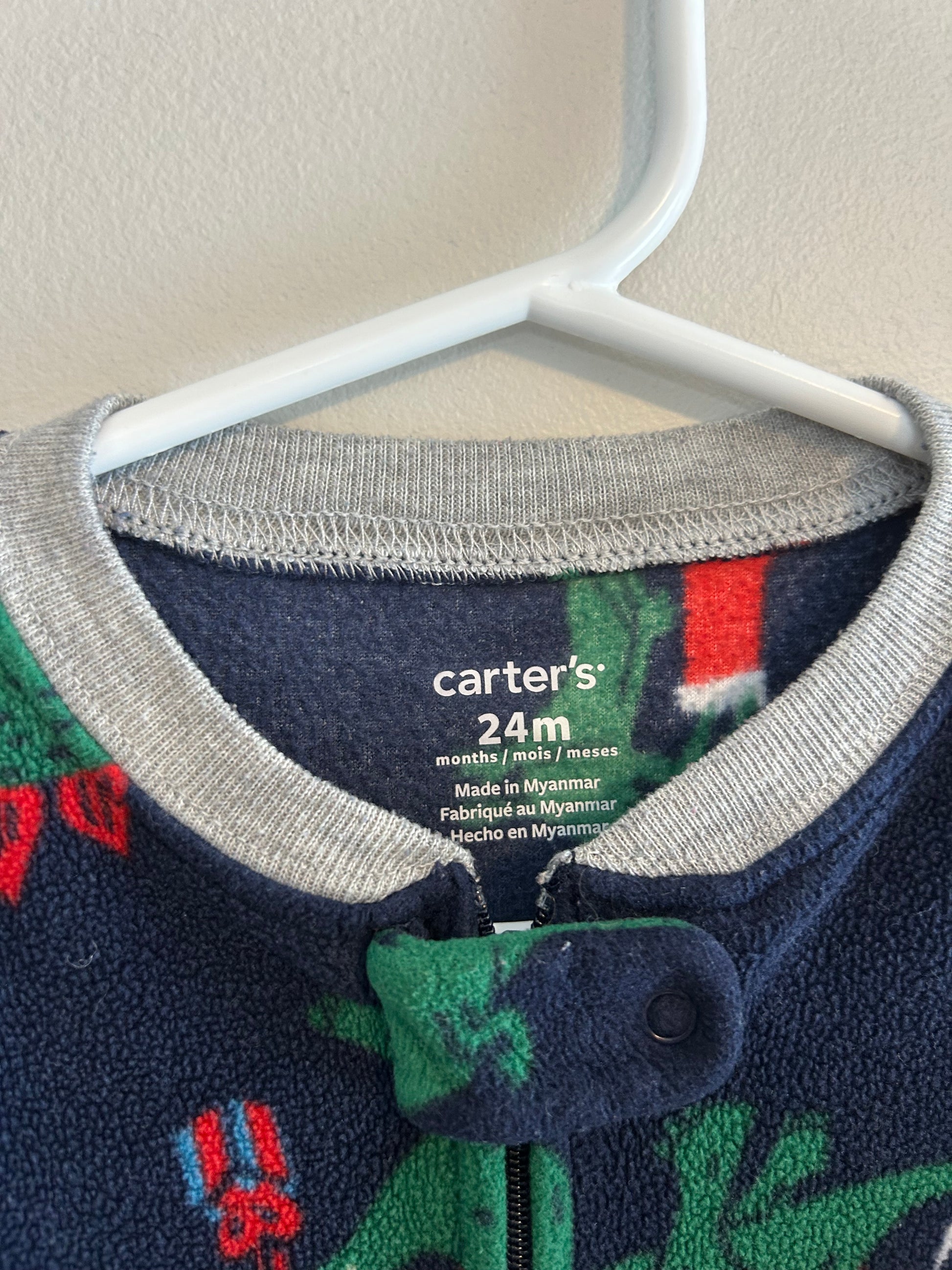 Carters brand. Zip up fleece sleeper. Navy blue with Christmas Dino’s. Size 24m. Brand new condition