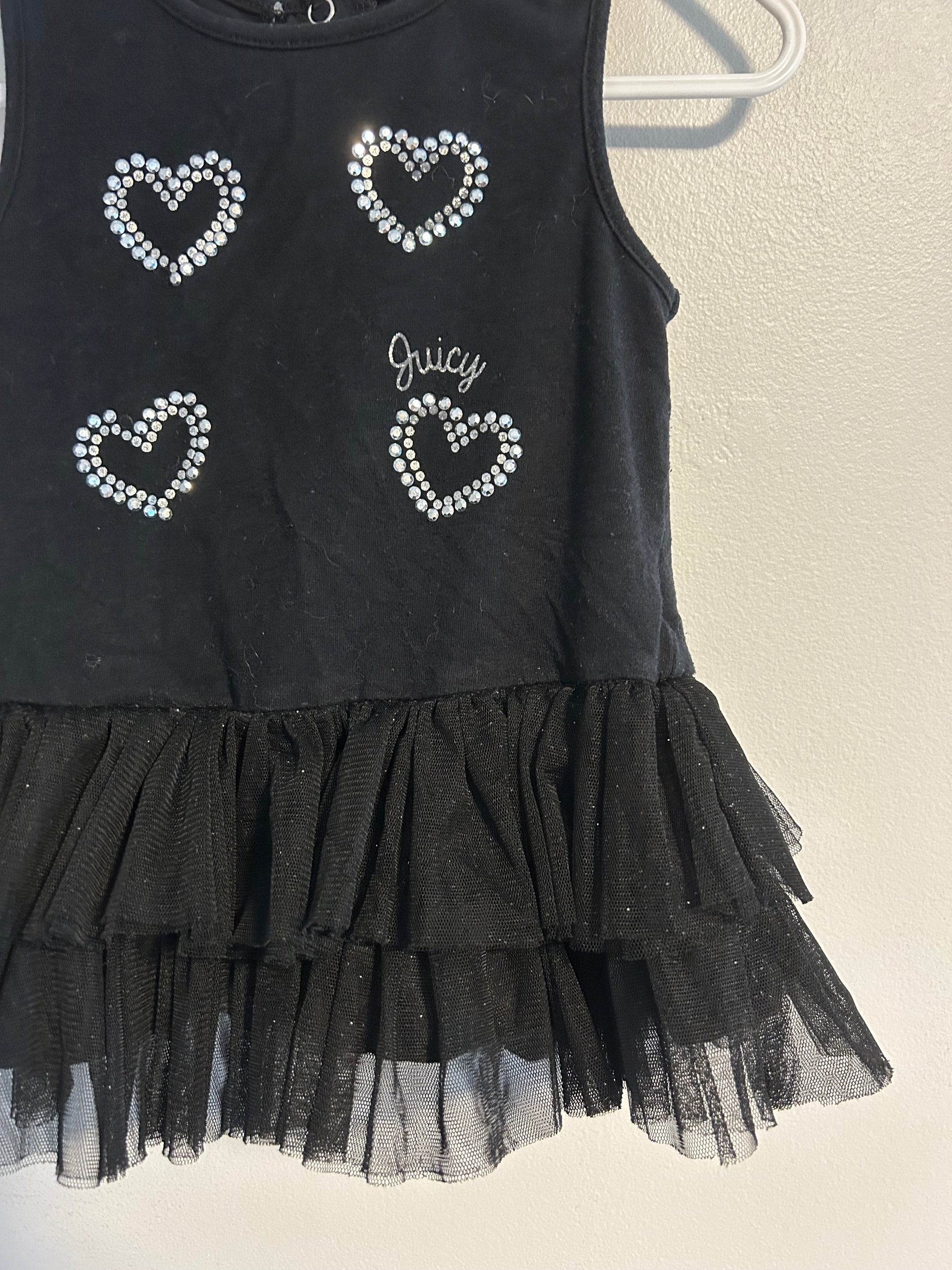 Juicy couture brand. Sleeveless tulle peplum top. Black with sequin hearts. Size 24m. Brand new condition