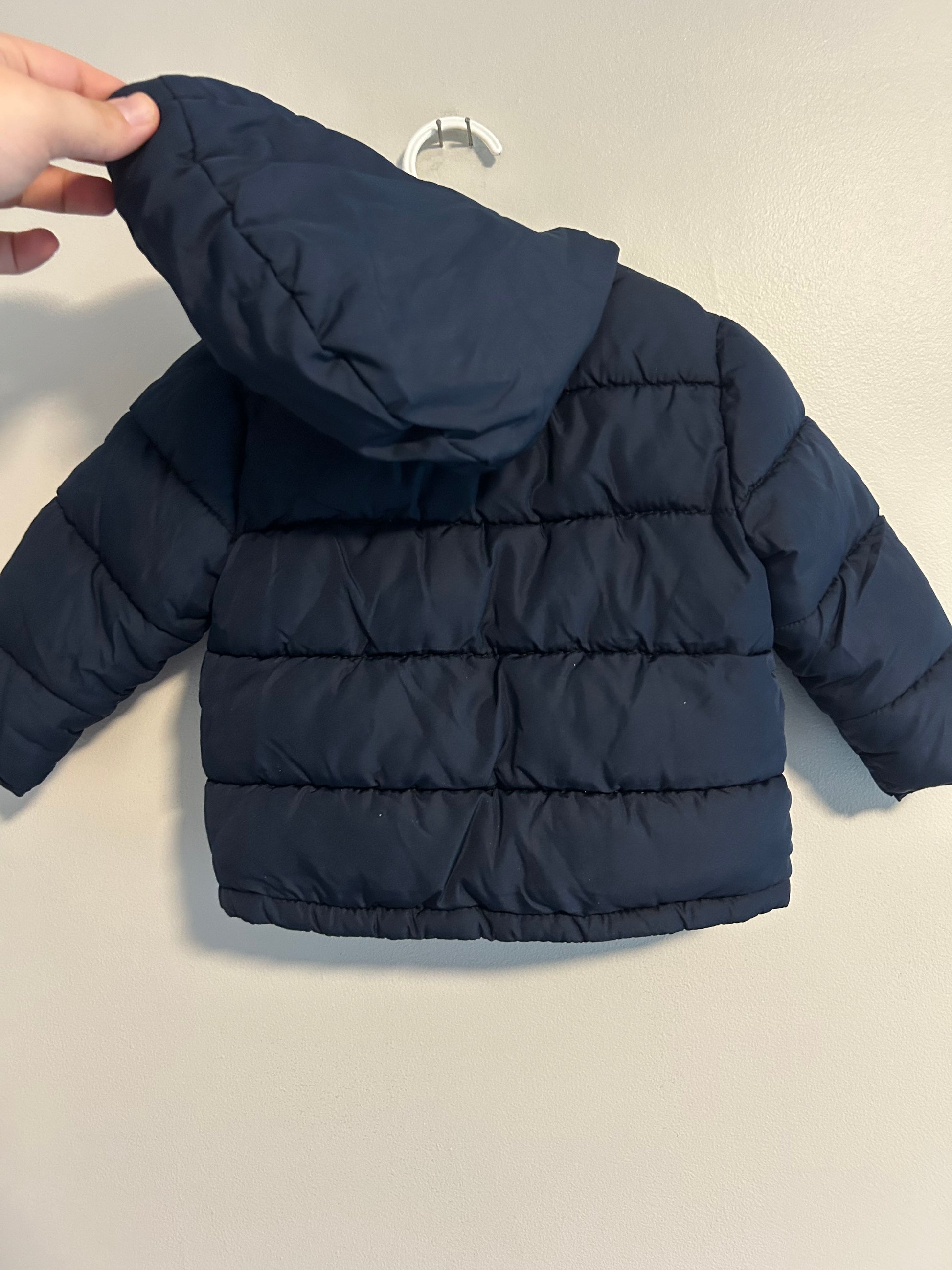 Old navy brand. Zip up hooded puffer jacket. Navy blue in colour. Size 12/18m. Brand new conditionÂ