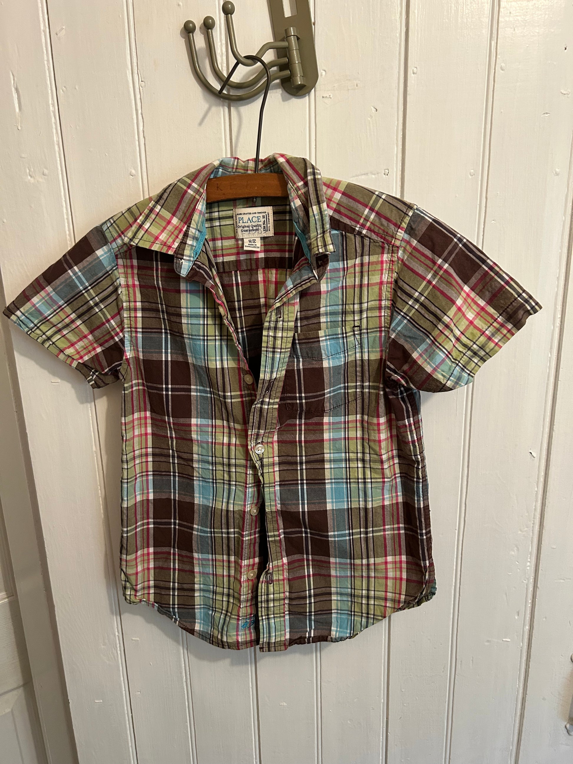 The children’s place brand. Short sleeve button up plaid shirt. Multicoloured plaid. Size boys 5/6. Brand new condition