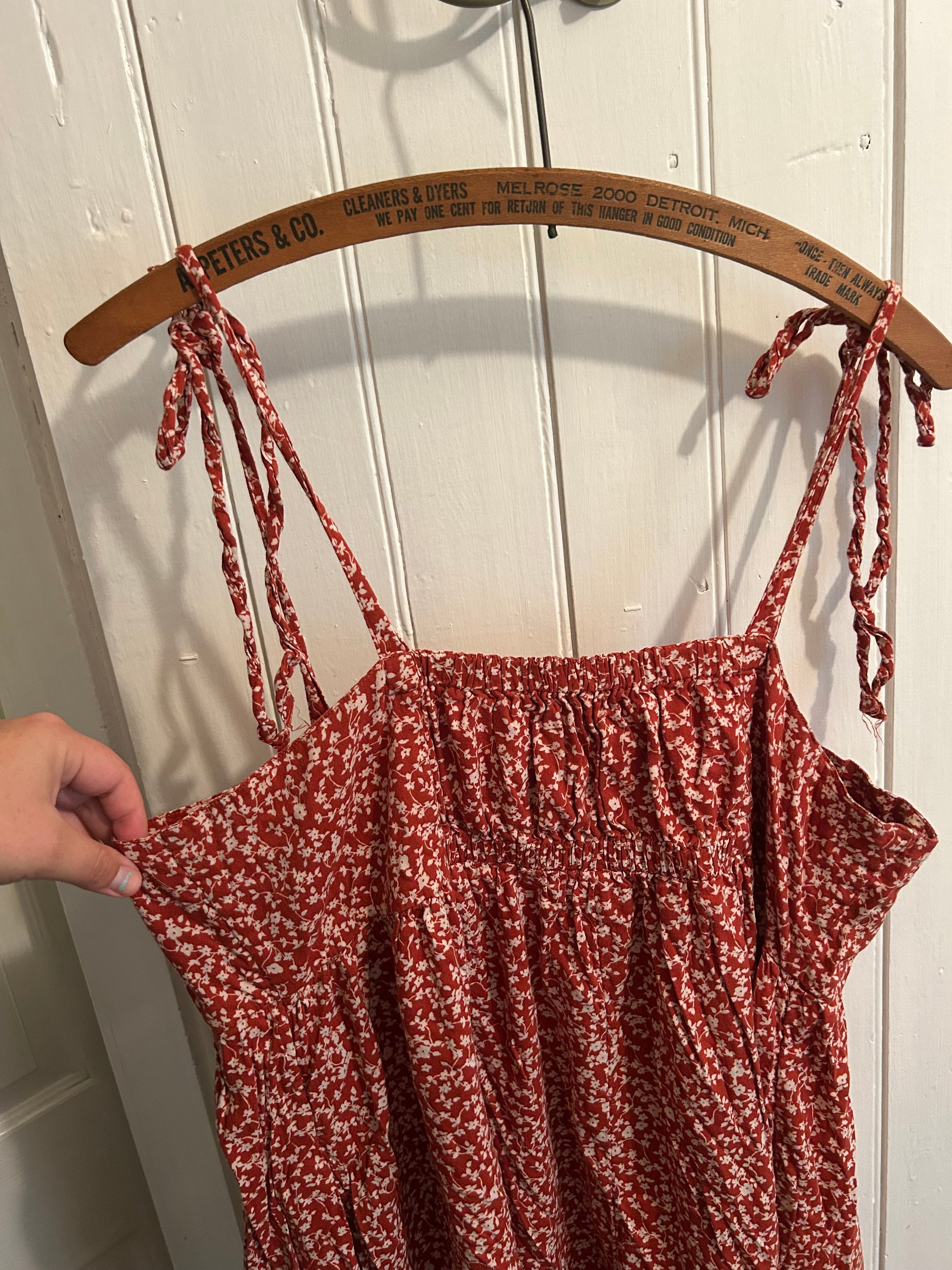 Old navy brand. Spaghetti strap midi dress. Straps are adjustable and can be tied as needed. Red & off white-tan floral print. Size women’s xl. Brand new condition
