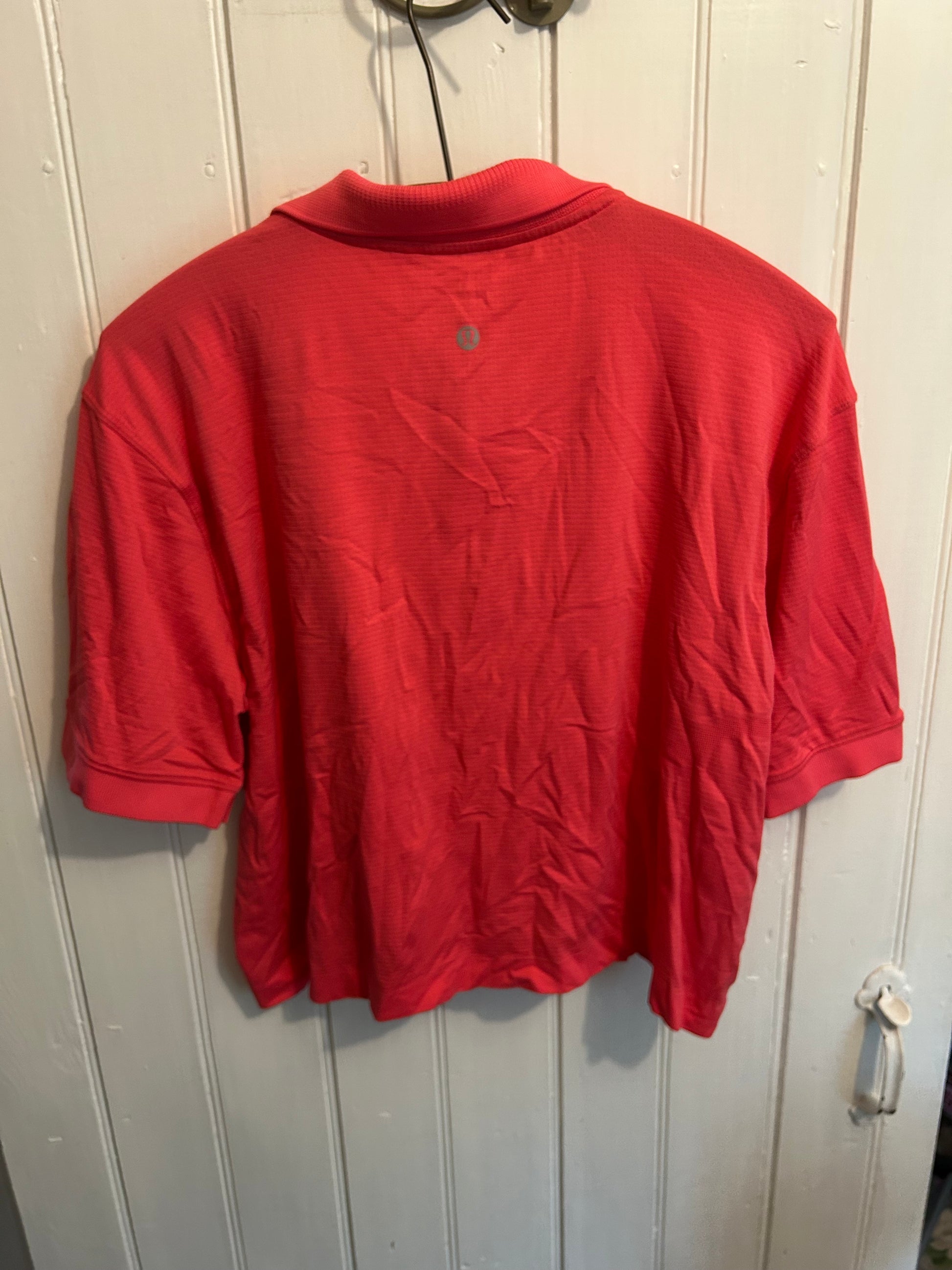 Lululemon brand. Short sleeve collard polo cropped top. Pink striped. No size dot, fits like 8/10. Brand new condition