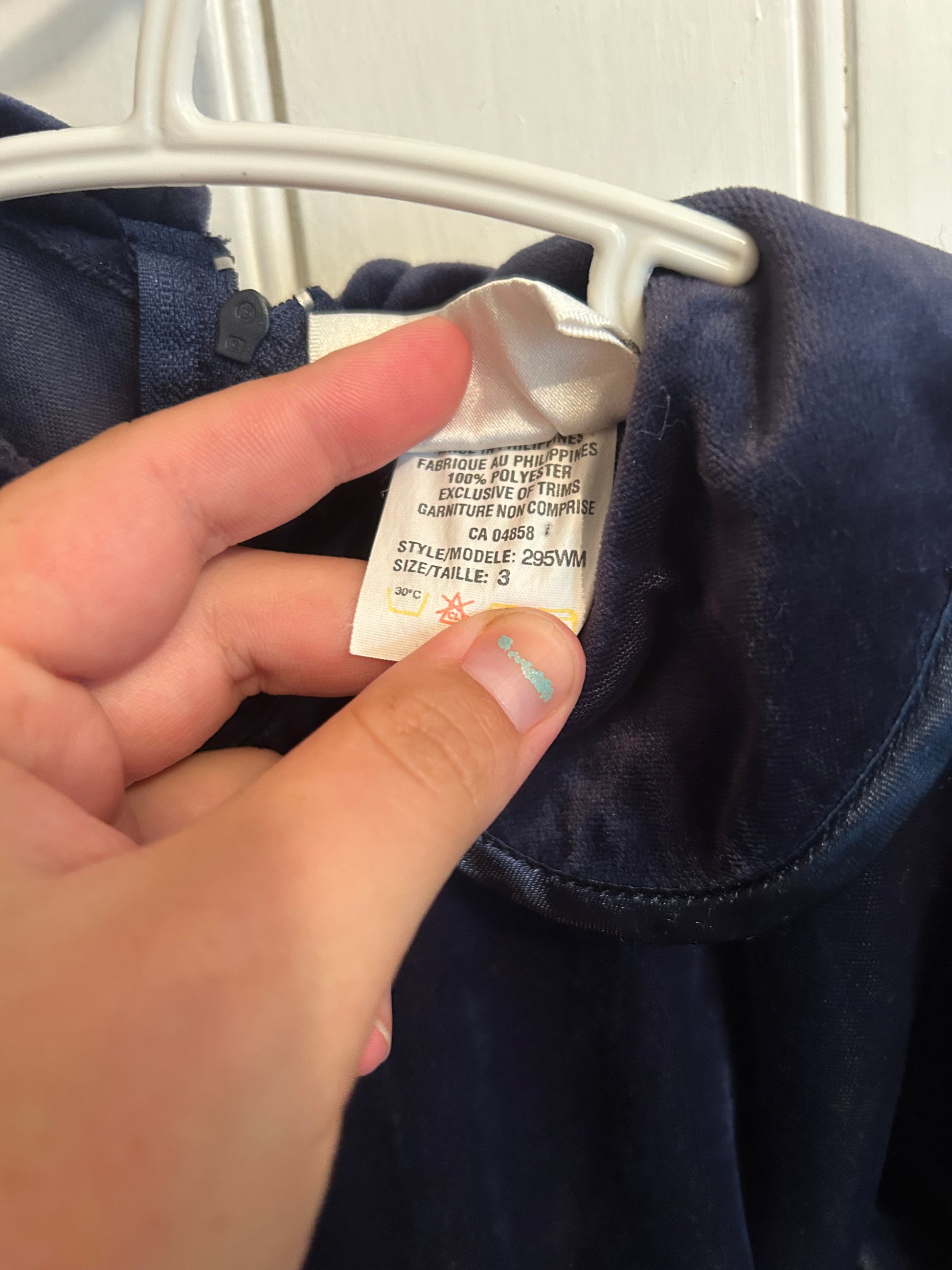 Vintage item. Premiere collection brand. Long sleeve collard dress. Blue velvet. Size 3t. Brand new condition
