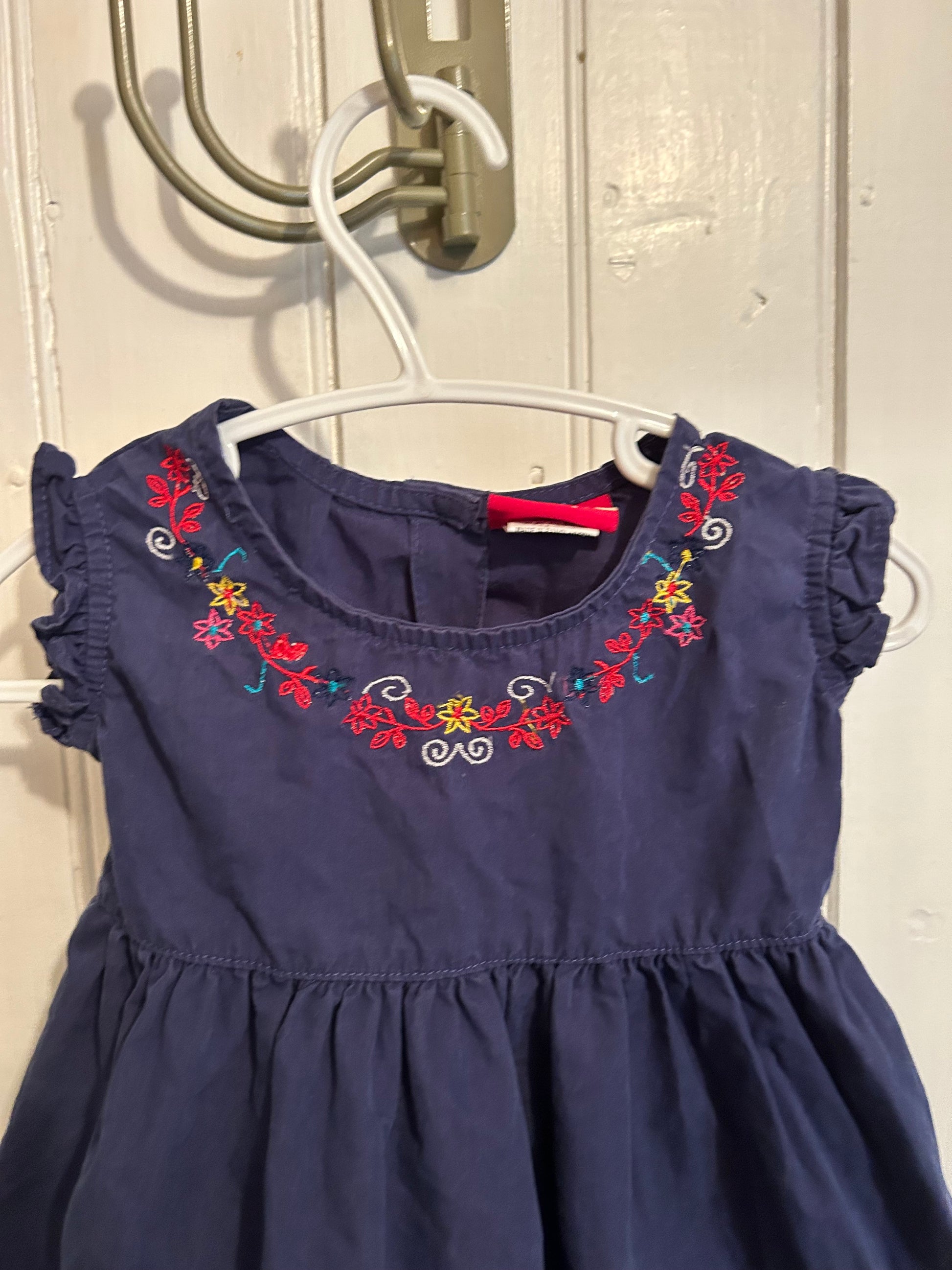 Vintage item. Stars brand. Short sleeve dress with multicoloured embroidered floral trim. Size 2t. Brand new condition
