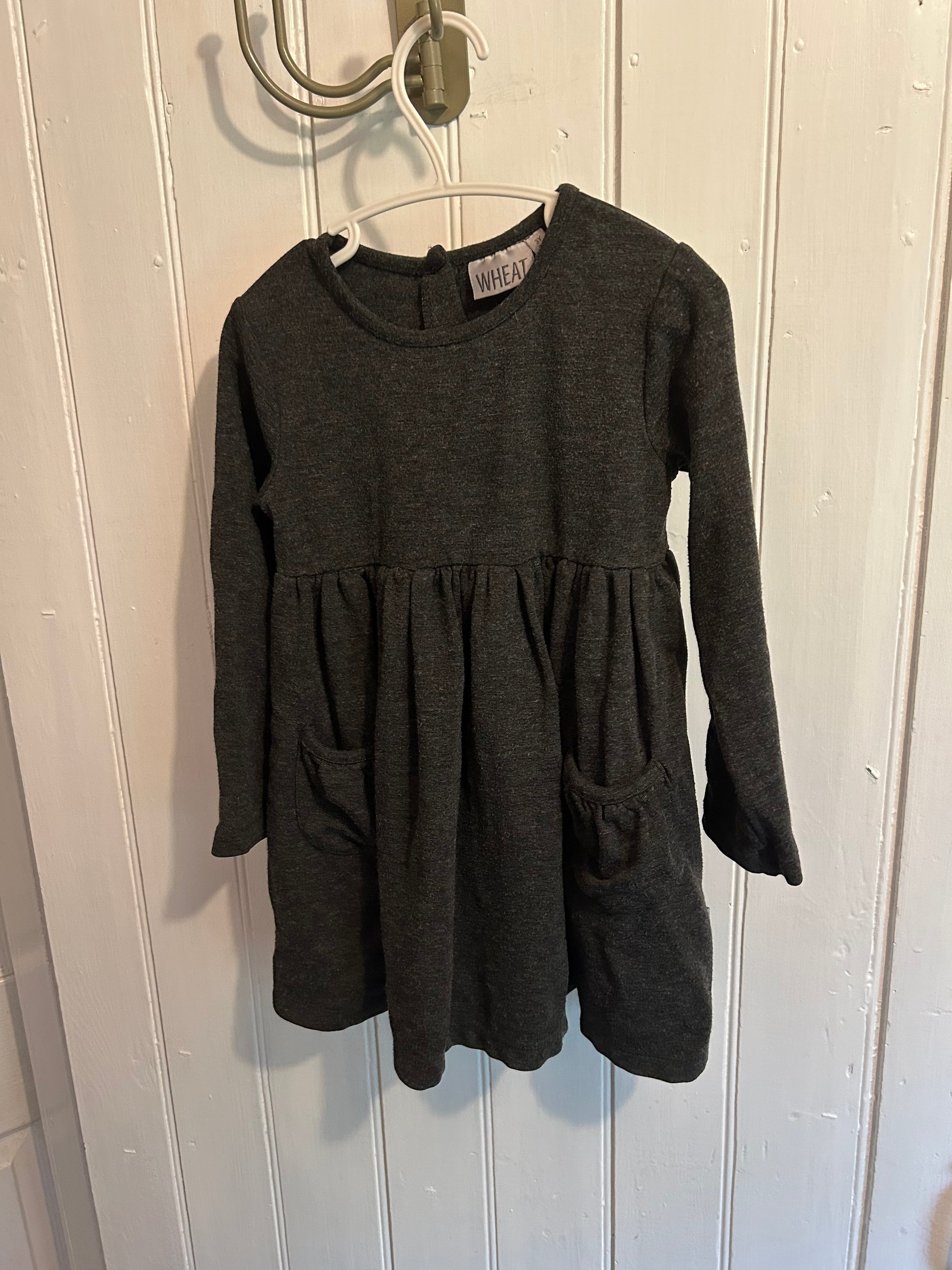 Wheat brand. Long sleeve dress, buttons on the back. Grey in colour. Size 3t. Brand new condition, very minor wash wear.