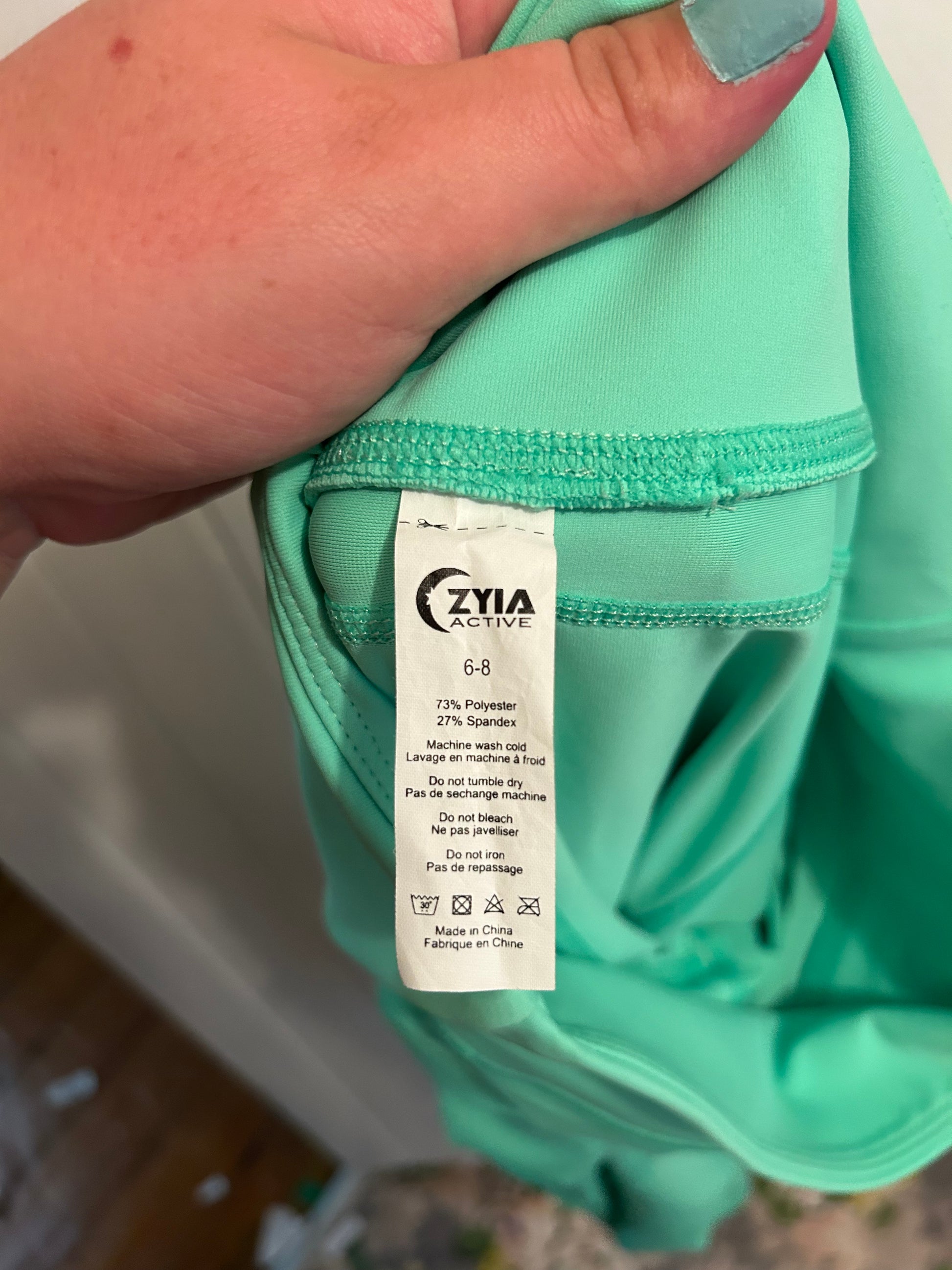 Zyia brand. 7/8 length athletic leggings with side phone pockets. Bright lime green. Size women’s 6/8. Brand new condition